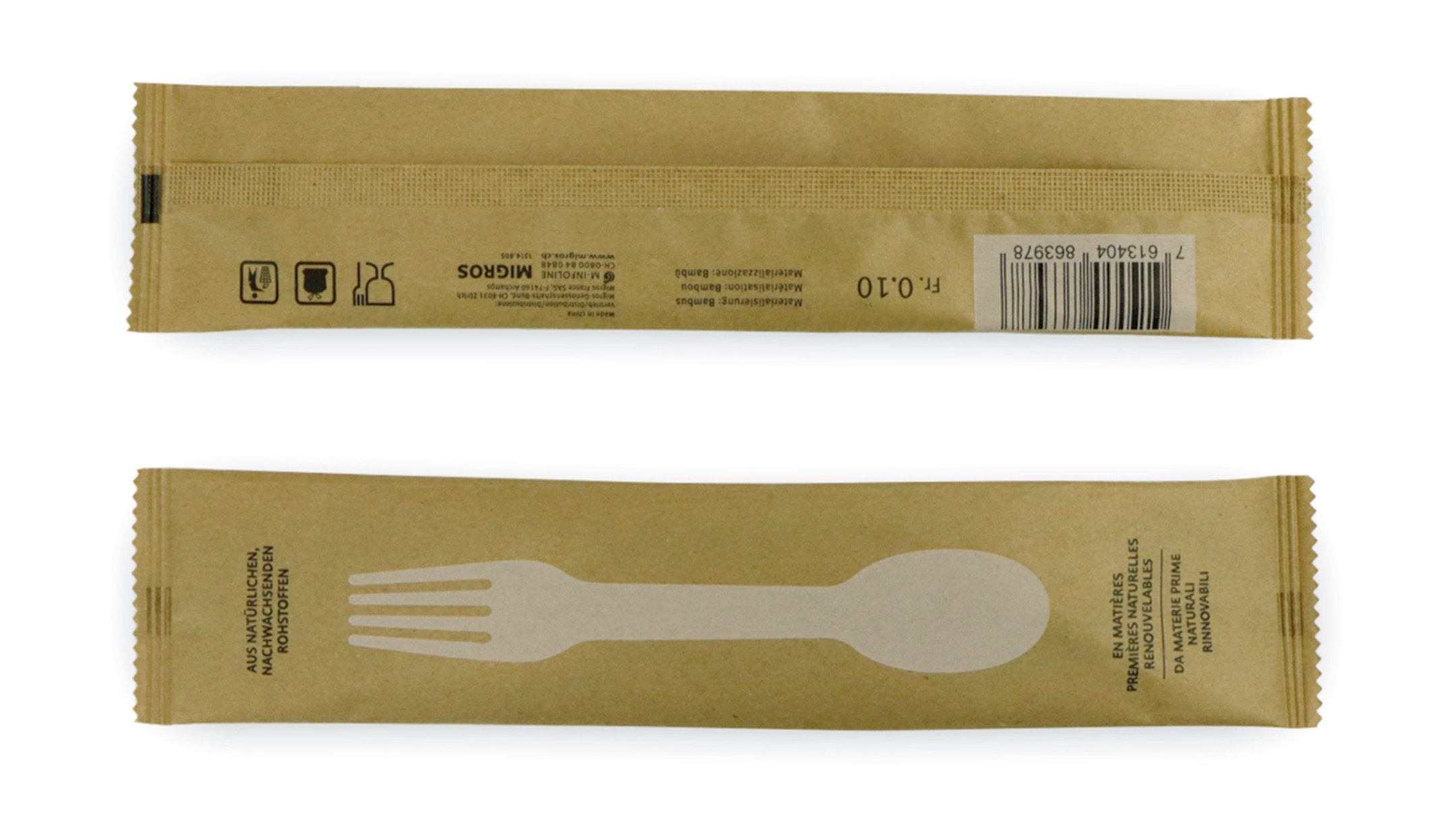 Künftig bietet die Migros ihren Kunden ein Set mit Gabel und Messer aus Holz sowie einen sogenannten Göffel an. Das neue Einwegbesteck kostet 10 Rappen. Laut Mitteilung wird die Detailhändlerin zudem Mehrwegbesteck aus Chromstahl (Preis: rund 13 Franken) prominenter an den Verkaufsstellen auslegen.
