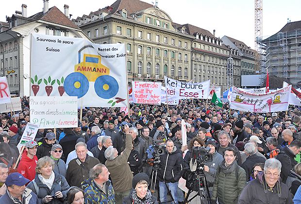 Seit Monaten könne er nicht kostendeckend Milch produzieren, doppelte SBV-Vizepräsident Hans Frei nach. Denn Milchbauern legten drauf: Die Vollkosten der Milchproduktion lägen im Tal bei mindestens 65 Rappen, «ohne Entschädigung der eigenen Arbeit und ohne Verzinsung des Eigenkapitals».