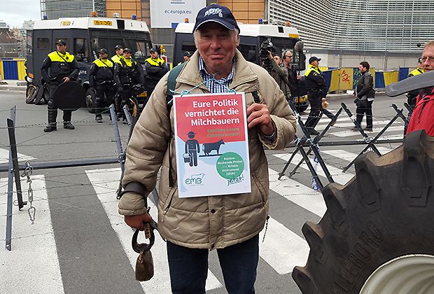 Eine Exportoffensive, wie sie EU-Landwirtschaftskommissar Phil Hogan immer wieder als mögliche Massnahme ins Feld führt, lehnt das EMB jedoch ab. «Wenn die Nachfrage in fünf Jahren steigt, dann bin ich als Bauer in der Zwischenzeit pleite gegangen, sagt Sieta van Keimpens. Auch gegen Subventionen sprechen sich die Milchbauern aus. Erwin Schöpges warnt die EU-Agrarminister: »Wenn ihr uns mit Geld abspeisen wollt, dann werden wir unsere Proteste weiterführen.«
