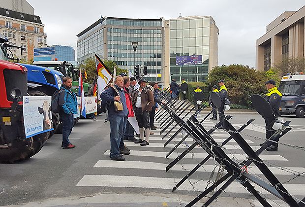Gegen Mittag demonstrierten bereits mehrere Hundert Landwirte mit Fahnen, Transparenten und einem Hupkonzert im EU-Viertel in Brüssel, um ihrem Anliegen Nachdruck zu verschaffen. Denn am Nachmittag findet dort ein Sondertreffen der EU-Agrarminister in Brüssel statt.