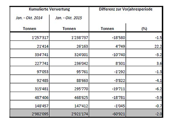 Im Vergleich zu 2013 lag die Produktion im Oktober 2015 um 0,3 Prozent höher als 2013. Im Juli und August wurden die Werte aus dem Jahr 2013 unterschritten. Die kumulierte Produktion der ersten zehn Monate des Jahres 2013 (2‘874‘398 Tonnen) liegt 1,6 Prozent unter dem Wert von 2015