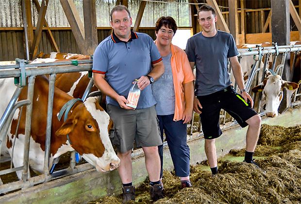 «Als uns Frank Baumann fragte, habe ich nicht lange gezögert», sagt Stefan Gilgen. Er, seine Frau Kathrin und Sohn Michael sitzen im Garten in Oberwangen BE. Hinter ihnen ist ein stattliches Berner Bauernhaus, daneben ein – trotz der Trockenheit – üppiger Garten und rund um sie Obstbäume. Affolter und Berger zahlen den Gilgens pro Kilo Milch 85 Rappen. Für die Bauernfamilie, die ihre Milch sonst als normale Industriemilch an Emmi liefert und letzten Monat knapp 60 Rappen pro Kilo bekam, ist das ein grosser Mehrwert – ohne dass sie viel mehr machen muss.