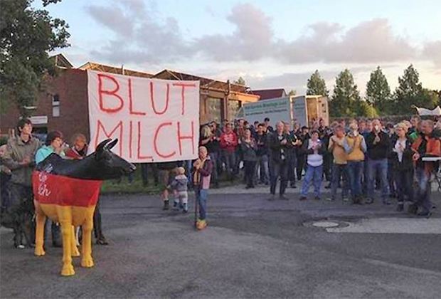Die sehr niedrigen Produzentenpreise für Milch drängen jetzt auch deutsche Bauern zu Protesten. Im Vergleich zu ihren französischen Kollegen verhalten sich die deutschen Landwirte aber moderat.