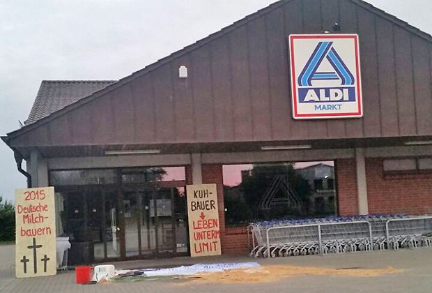 Anlass der Demonstration war die von Aldi Anfang vergangener Woche vorgenommene Preissenkung für einige Käsesorten und das Päckchen Butter von 85 Cent auf 79 Cent. Neben einigen Schweinehaltern hätten sich auch Lohnunternehmer und Tierärzte den Protesten angeschlossen, weil diese durch die Notlage der Bauern von dem Ausfall von Rechnungsforderungen betroffen seien, berichtete der AbL-Landesverband.