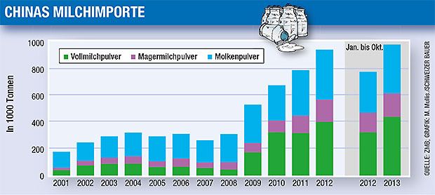 China habe sich in den letzten Jahren weltweit zum bedeutendsten Importeur von Milchprodukten entwickelt. Dies schreiben die Schweizer Milchproduzenten (SMP) in ihrem Monatsbericht Dezember 2013.