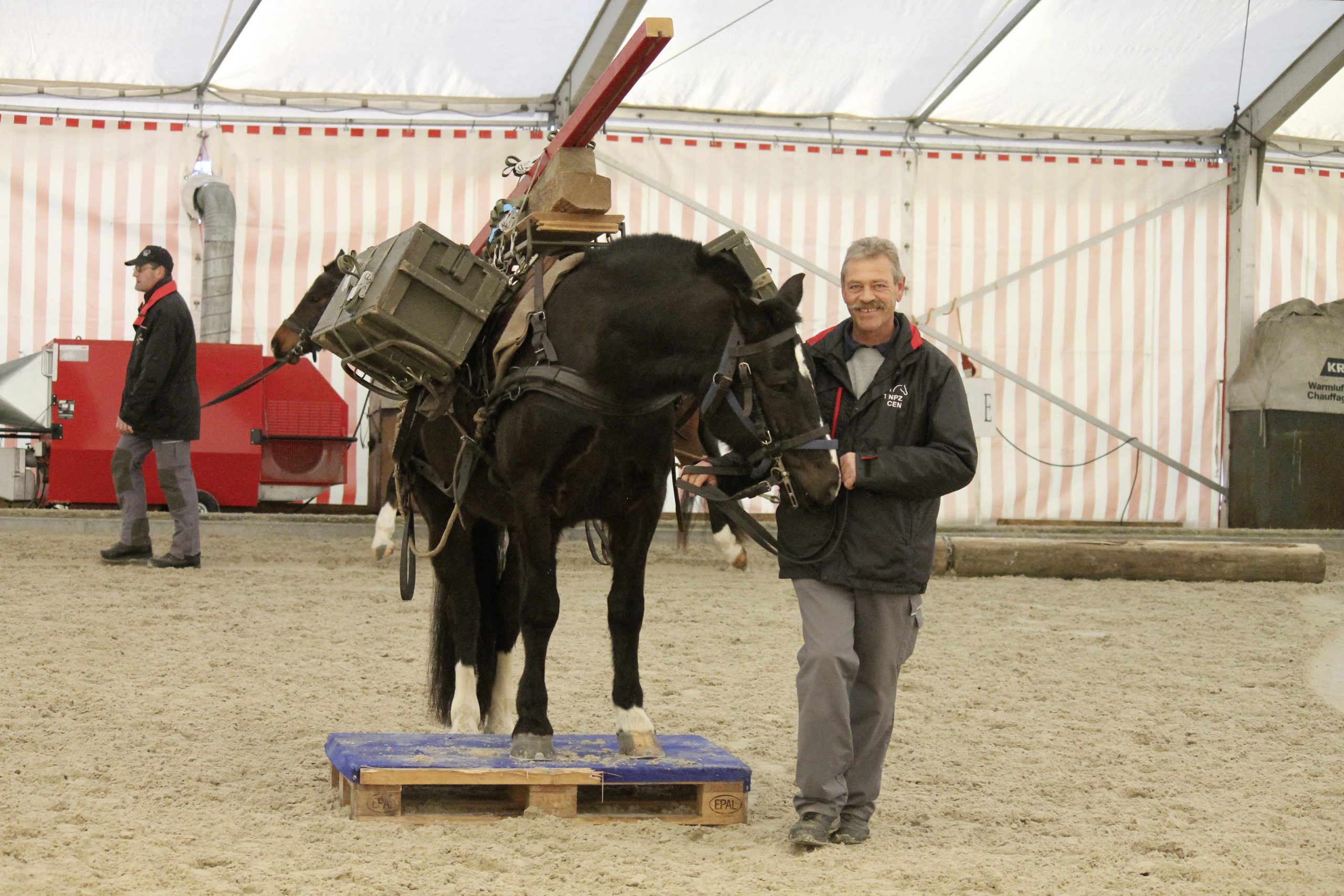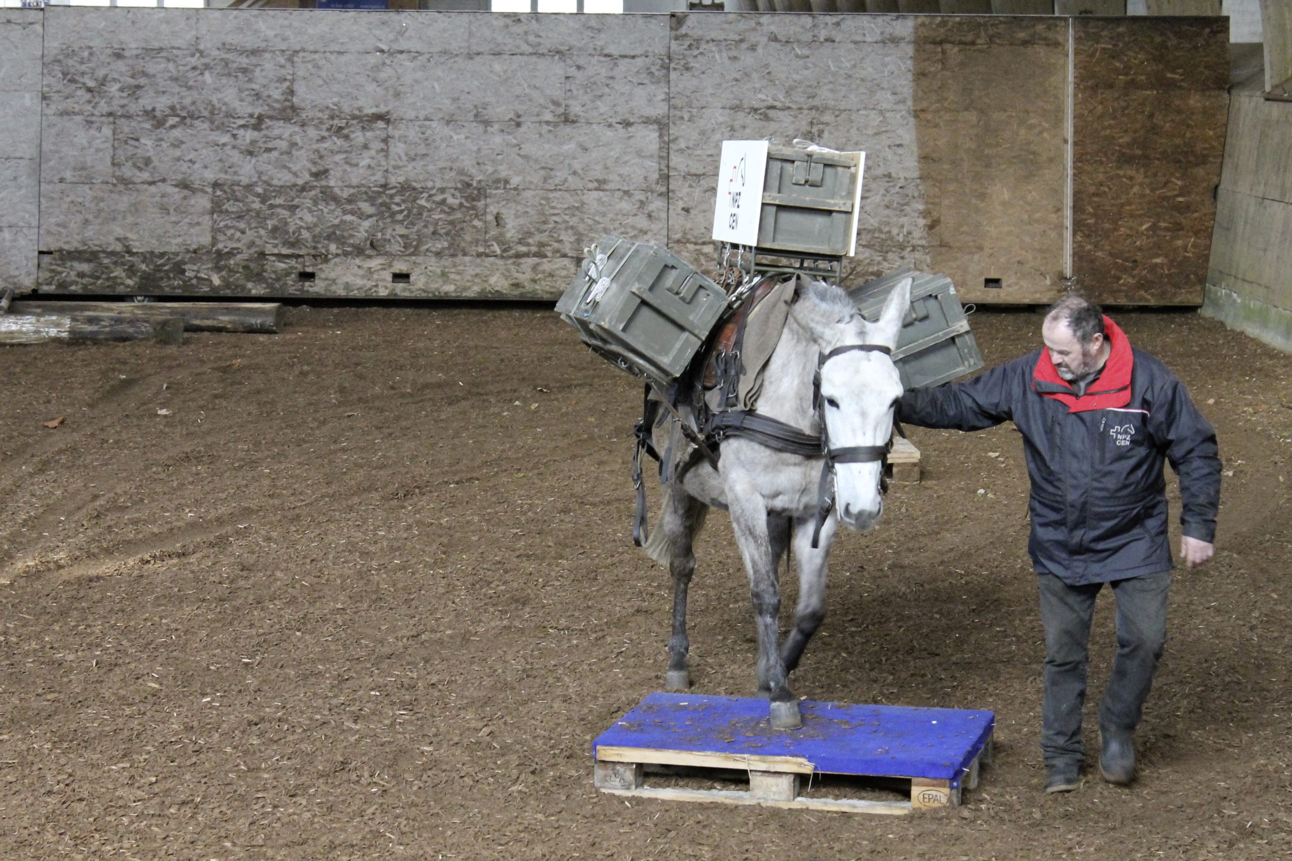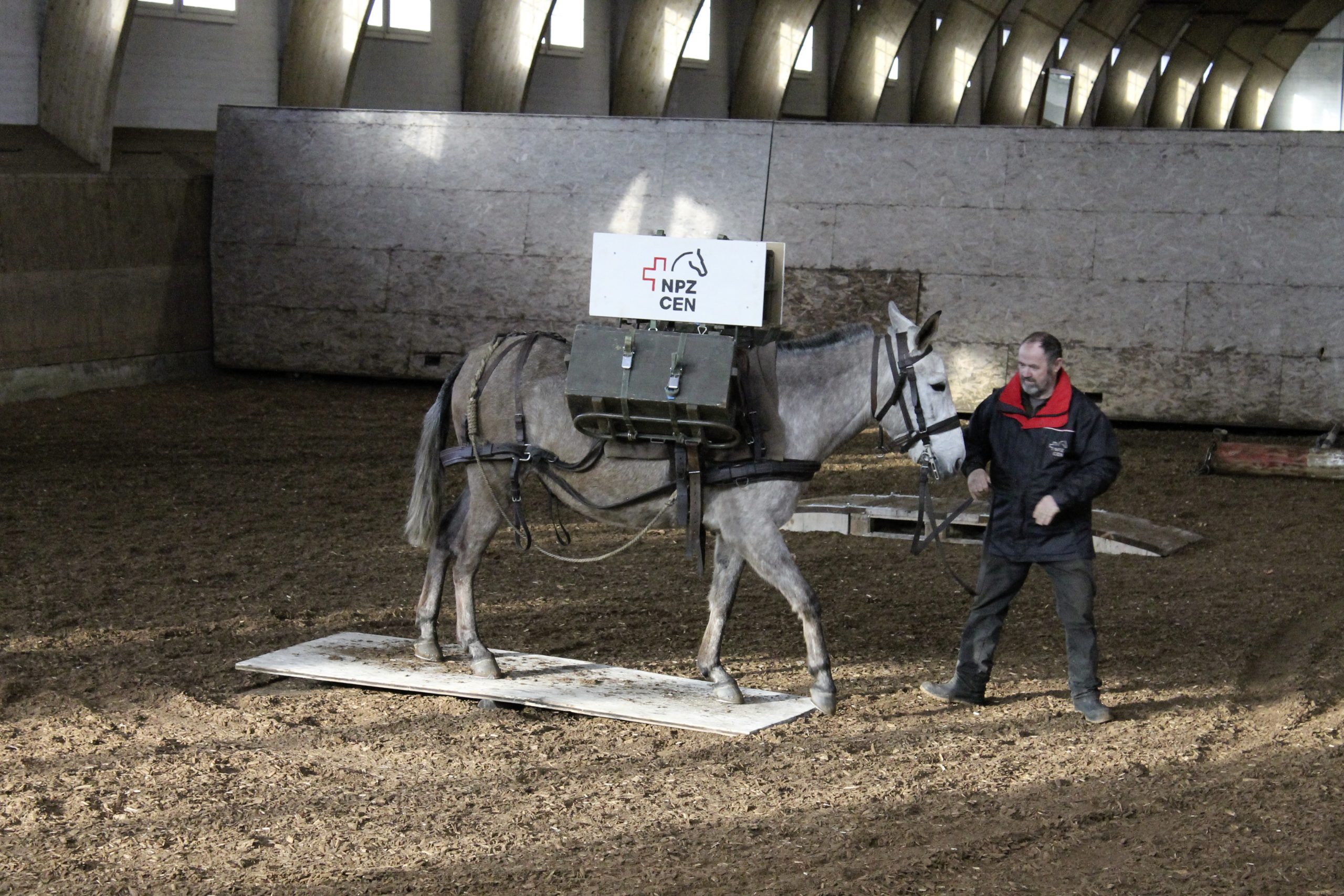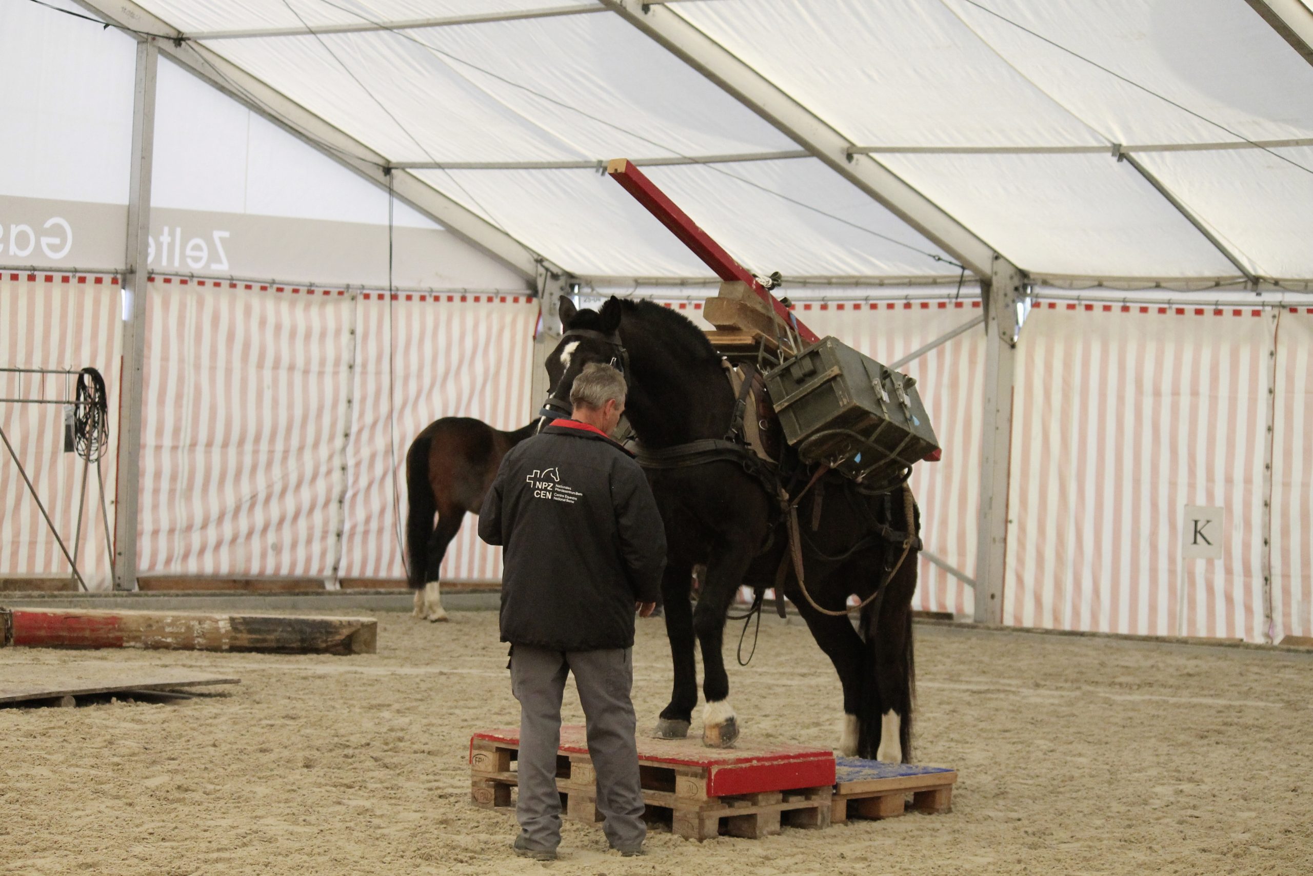 Die Lasten bewegen sich beim Überqueren der Hindernisse mehr, und das Pferd muss dabei trotzdem ruhig und konzentriert bleiben und die Lasten ausbalancieren. Die Tiere müssen beispielweise auch einfach einmal einen Moment auf dem Podest verbringen und somit eine ungewohnte Position mit der Last einnehmen.