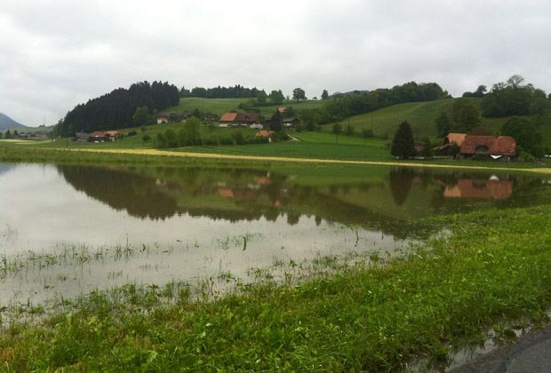 Besonders über der Zentral- und Ostschweiz öffnete Petrus seine Schleusen. Grosse Regenmassen prasselten auf die übersättigten Böden. Die Folge waren massive Überschwemmungen, Hangrutsche, Murgänge und sogar ein Dammbruch. Zahlreiche Felder stehen immer noch unter Wasser, die Kulturen dürften erhebliche Schäden davon tragen.