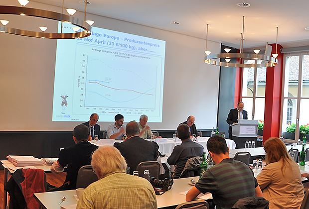 Christophe Noël von den SMP zeigte anhand von aktuellen Zahlen auf, dass die Differenz beim Produzentenpreis von Molkereimilch unter den Abnehmern derzeit bis zu 10 Rp. je Kilo betrage, und dass die Margen der Verarbeiter nach wie vor hoch seien.