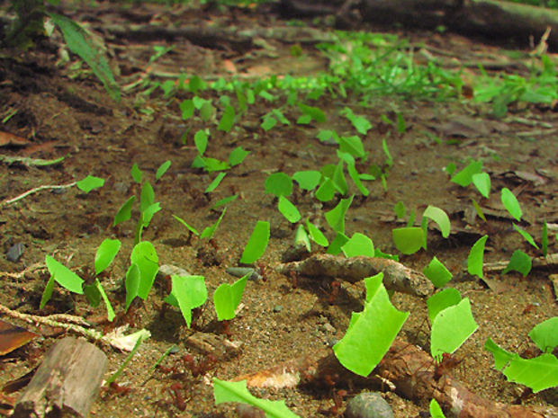 Blattschneiderameisen wie Acromyrmex subterraneus sind dafür bekannt, in ihren Nestern ausgedehnte Pilzgärten anzulegen. Von diesen ernähren sie sich. Zum Züchten der Leucoagaricus-Pilze zerschneiden die Ameisen Blätter mit ihren grossen Mundwerkzeugen, zerkauen die Stücke und formen daraus Kügelchen.