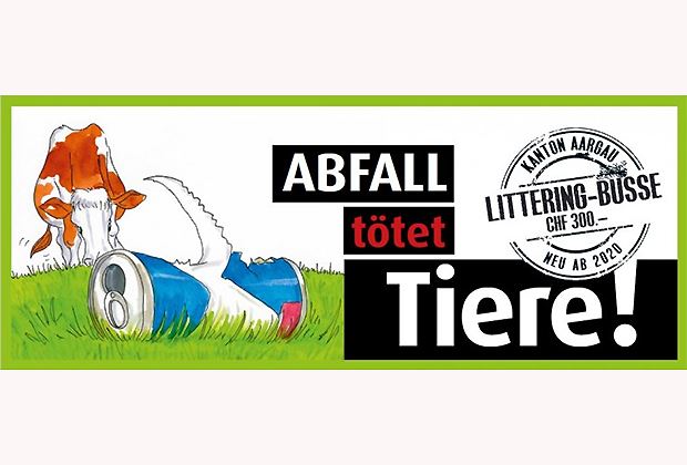 2018 hat der Bauernverband Aargau (BVA) die Aktion Stop Littering mit Mahnmalen entlang von Strassen lanciert. Nun werden die Mahnmale durch Blachen ersetzt.
