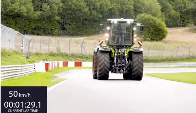 Nun sollte er aber eine viel grösseres Gefährt steuern, und das über die Nordschleife des Nürburgringes. Die Dimensionen sind eindrücklich: Der Xerion 5000 ist 7,16 Meter lang, vier Meter hoch und weist eine Breite von drei Metern auf. Aus 12,8 Litern Hubraum saugt der Traktor rund 520 PS und bringt es auf 50 km/h Spitzentempo. Das maximale Drehmoment von 2’600 Newtonmetern wird über alle vier Räder verteilt.
