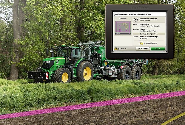 "Oftmals wird das volle Leistungspotential von Traktor und Gerät deshalb nicht abgerufen und es geht wertvolle Einsatzzeit verloren. Mit John Deere AutoSetup ist jetzt nur noch ein Klick notwendig", so John Deere. Alle Einstellungen lassen sich komplett in einem Profil speichern und werden automatisch geladen, sobald die Maschine das Feld erreicht hat. Der Fahrer bestätigt die Übernahme der Einstellungen.