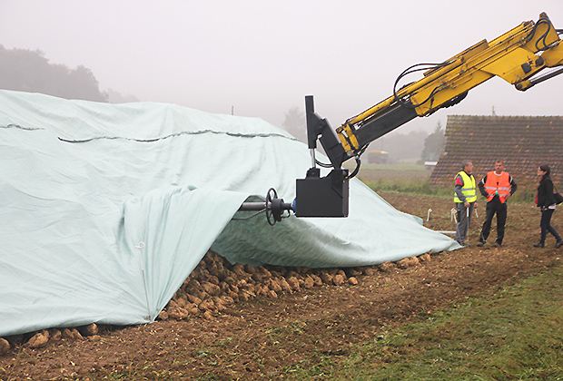 Das Decken und das Abdecken der Zuckerrübenmieten sind anstrengende Arbeiten. In Oberstammheim ZH wurde eine eigens dafür entwickelte Maschine vorgeführt, welche diese Arbeit nun mechanisch übernimmt.