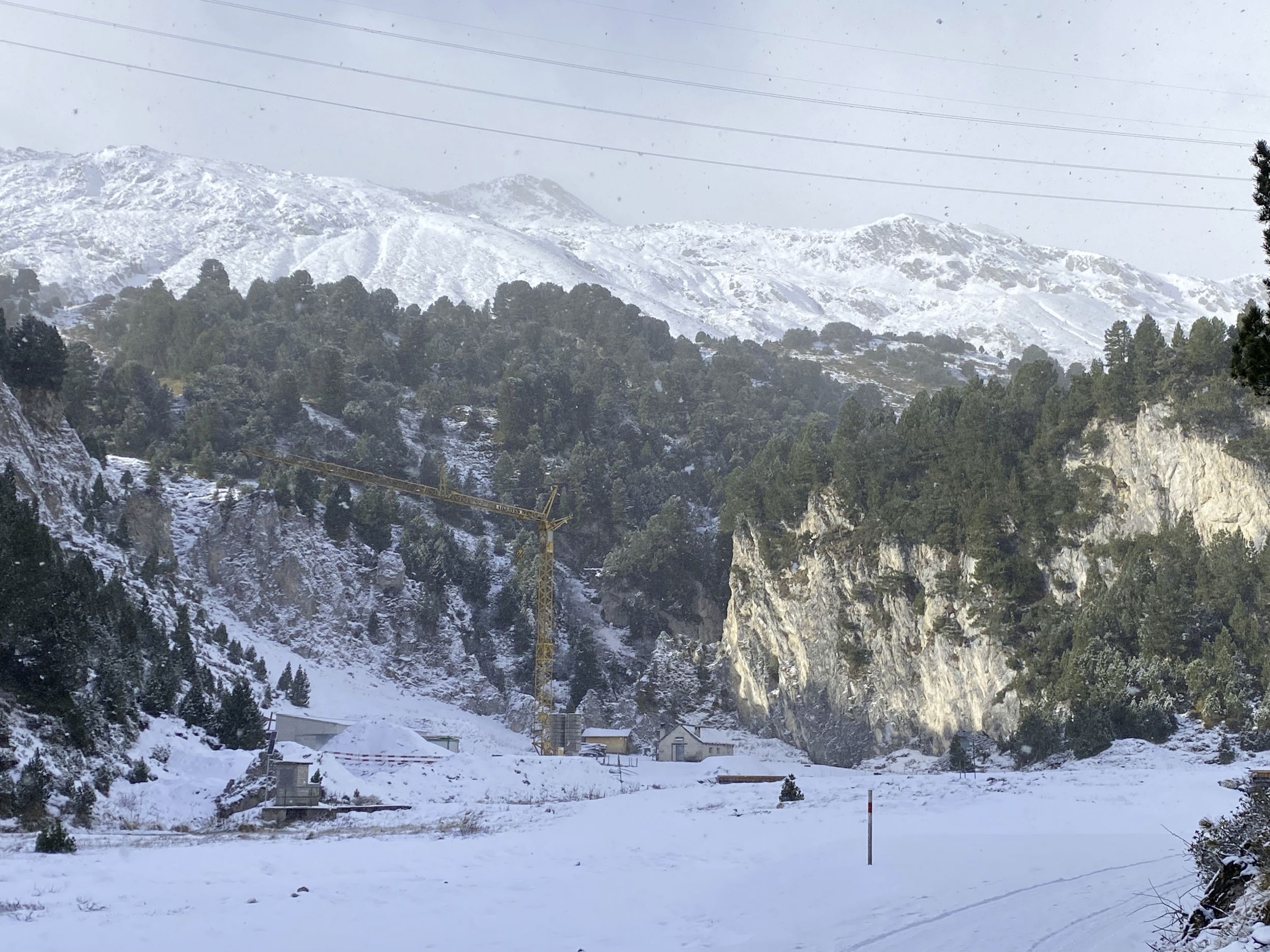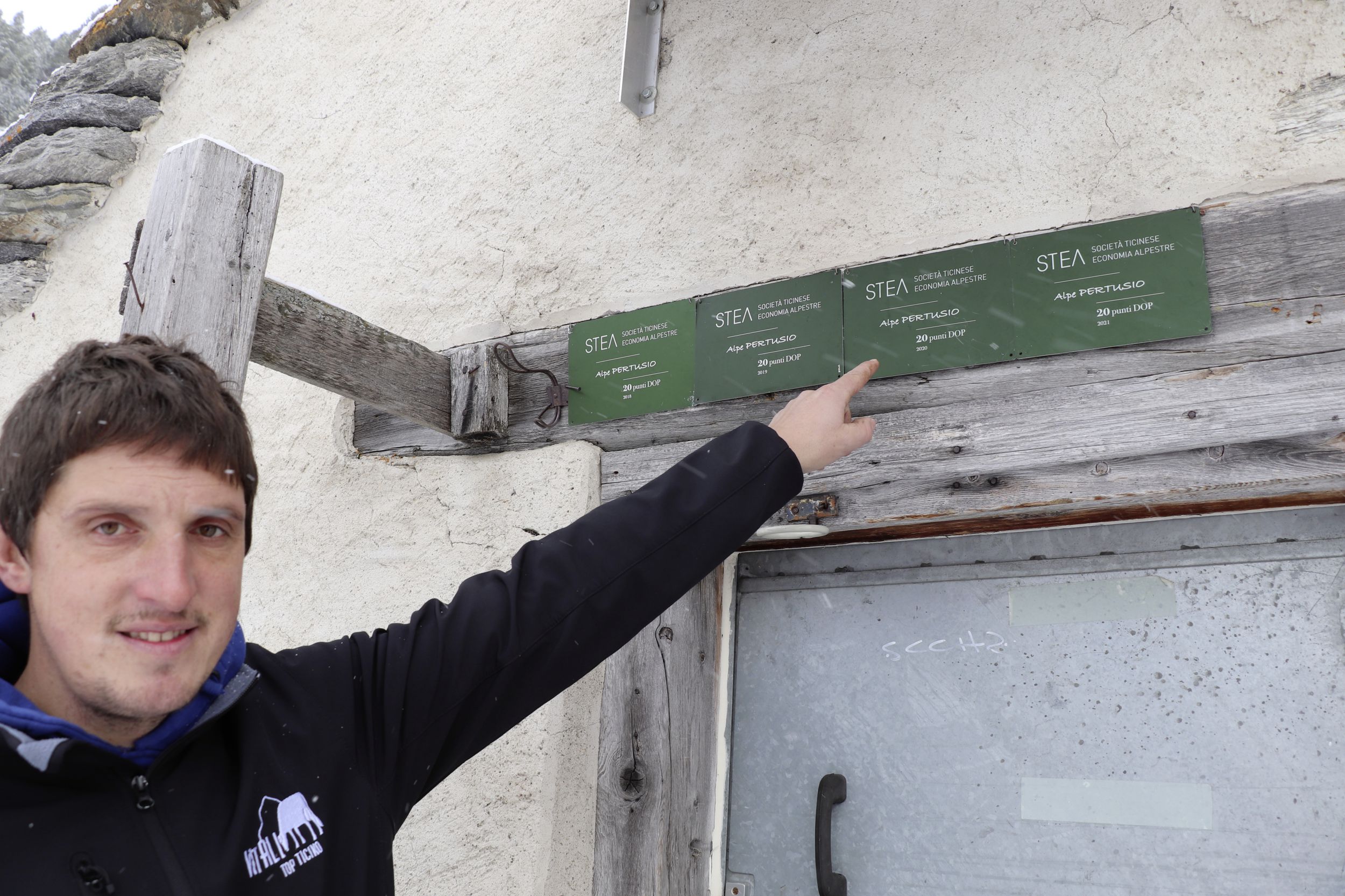 Nachdem Vater und Sohn mir die Eckdaten zum Betrieb erläutert haben, geht es auf 2000 m ü. M. zum Standort der Alp. Ein kräftiger Wind weht, Schnee ist gefallen. Die Temperaturen liegen unter dem Gefrierpunkt. Auf der Lucomagno-Passstrasse fahren wir vorbei an Sumpfflächen und Wäldern voller Arven, deren Spitzen schneebedeckt sind. Wir befinden uns im Bleniotal, wo die Quellen des Brenno sind.