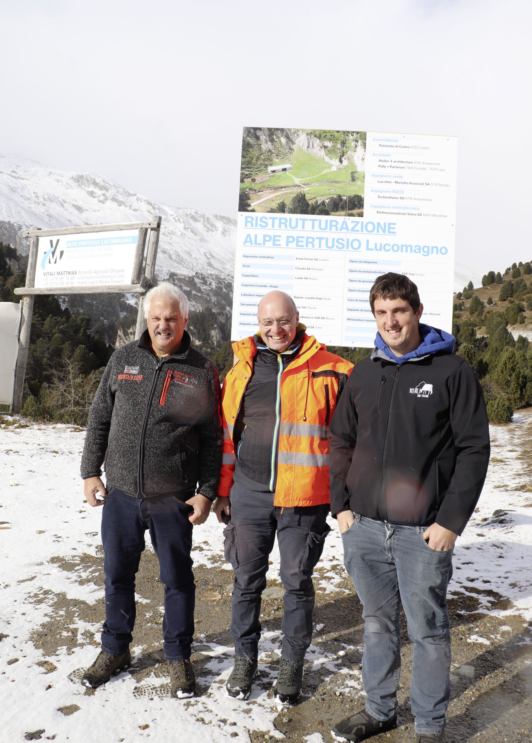 Ich treffe mich in Olivone (TI) in einem Café, das direkt an der Strasse zum Lukmanierpass liegt, mit Matthias Vitali und seinem Vater Doriano. Giorgio Bassi vom Tessiner Landwirtschaftsamt mit Sitz in Bellinzona begleitet uns. Wir wollen uns zur Alpe Pertusio aufmachen. Die Alp ist ein Projekt, das von Bund und Kanton im Rahmen der Strukturverbesserungsmassnahmen (siehe Textbox) finanziell unterstützt wird. Der Kostenumfang beträgt über 3 Mio. CHF, eine stattliche Summe.