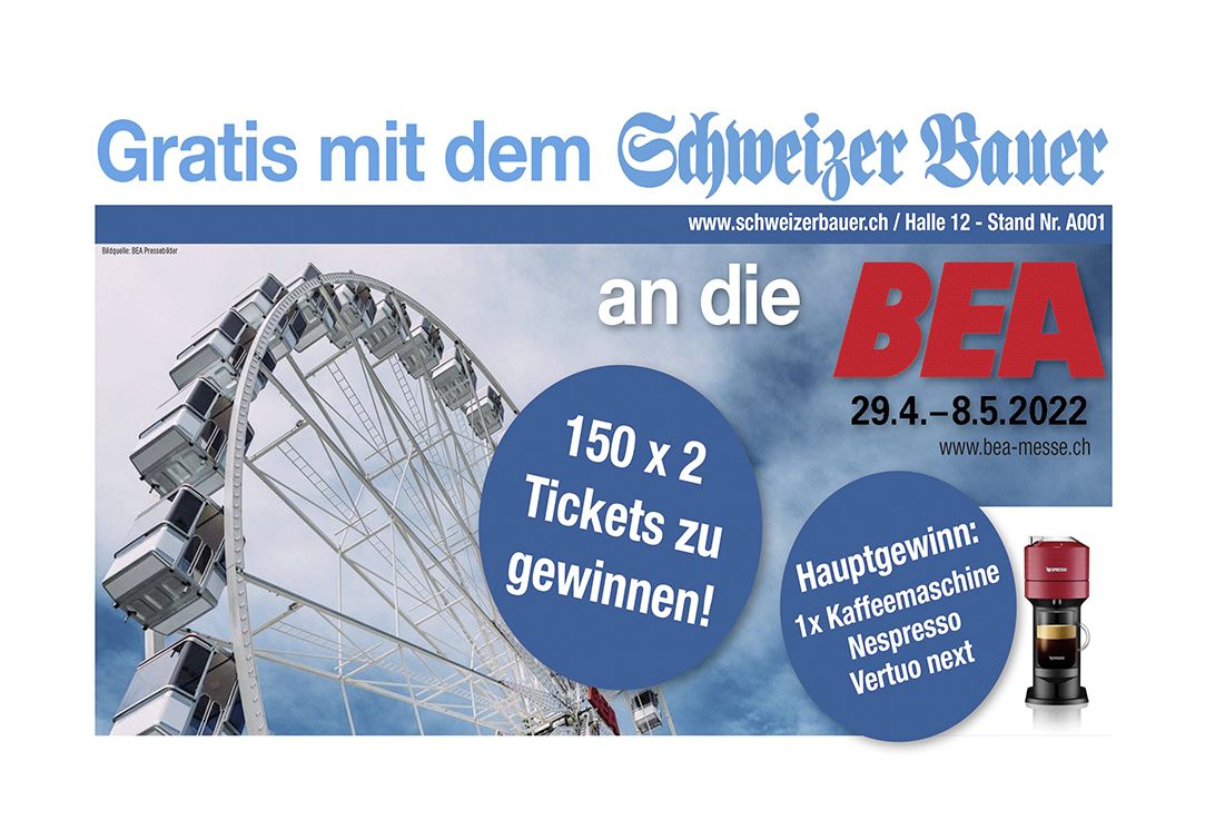Bald ist es soweit: Vom 29. April bis 8. Mai 2022 findet in Bern nach 2 Jahren Unterbruch wieder die beliebte Frühlingsmesse BEA statt. Mit etwas Glück sind Sie kostenlos dabei. Als Hauptgewinn winkt eine Kaffeemaschine.