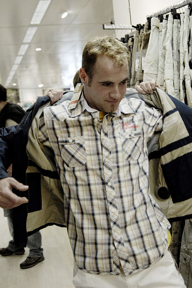 Passt Marco Vogel (GL) der Anzug nicht richtig? Was macht denn Andreas Breitenmoser (GR) da für eine Pose? Marco Vogel (GL) nur in Unterwäsche.... Matthias Arnold (LU) strahlt zwischen den beiden Frauen. Raphael Bühlmann (LU) einmal ganz ernst. Shoppen macht Christian Kündig (SZ) und den anderen Finalisten offensichtlich viel Spass. Ob diese Kleider wohl Pascal Fischbacher (SG) gefallen? Pascal Fischbacher (SG) einmal ernst. Christian Kündig (SZ)wird neu eingekleidet. Ist Roman Bösch (SG) irgendwie skeptisch? Peter Frei (SG) zeigt sich von seiner Schokoladen-Seite. Pascal Fischbacher (SG) posiert wie ein Profi... Roman Bösch (SG)ist voll in Sommerlaune. Martin Kälin (SZ) ist schon eifrig beim Posieren. Pascal Fischbacher (SG) kann sich wohl nicht richtig entscheiden. Roman Bösch (SG) im schmucken Anzug. Peter Frei (SG) im edlen Anzug. Gefällt Martin Kälin (SZ) dieses Hemd besser? Wer zieht sich da wohl gerade um? Raphael Bühlmann (LU) freut sich über die neuen Kleider. Luc Baehler (JU) oben ohne..