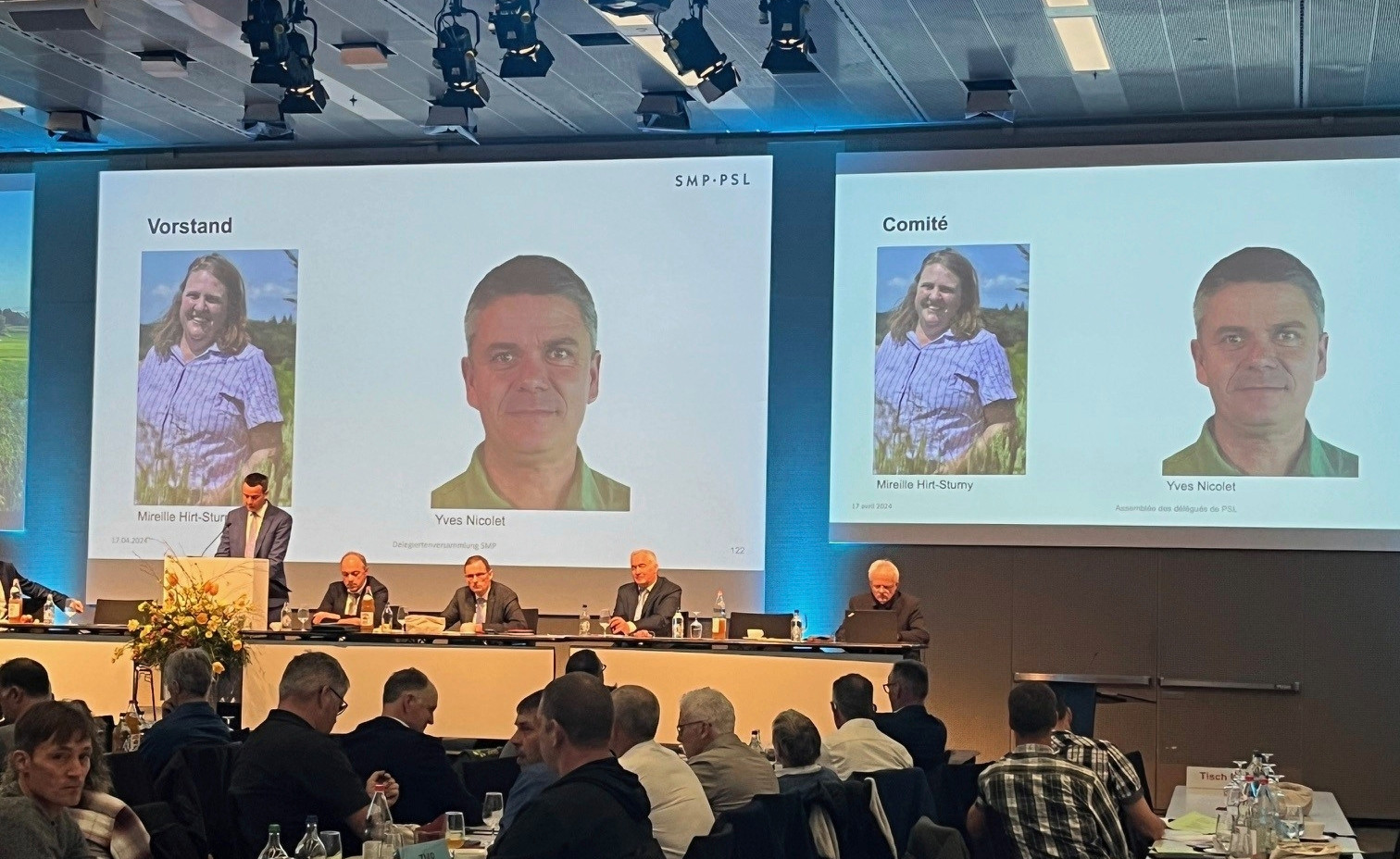 Die Nachfolge von Christophe Noël tritt Mireille Hirt-Sturny aus St. Ursen FR an. Yves Nicolet (designierter Präsident FSFL) aus Cottens FR wurde als Nachfolger von Gabriel Yerly (Präsident FSFL) in den SMP-Vorstand gewählt. Neue Suppleanten sind Frédéric Braillard aus St. Martin FR für FSFL und Anthony Kern aus Rossens VD für Prolait.