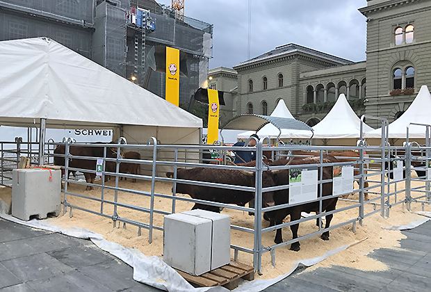 Das 40-jährige Jubiläum wird mit verschiedenen Anlässen gefeiert. So auch auf dem Bundesplatz in Bern, wo normalerweise ein Wasserspiel für Unterhaltung sorgt. In den kommenden Tagen werden Mütterkühe, Kälber und zwei Stiere den Platz in Anspruch nehmen. Insgesamt gibt es 10 verschiedene Rassen bestaunen. Auch Ziegen, Schafe und andere Tiere sind in Bern zugegen