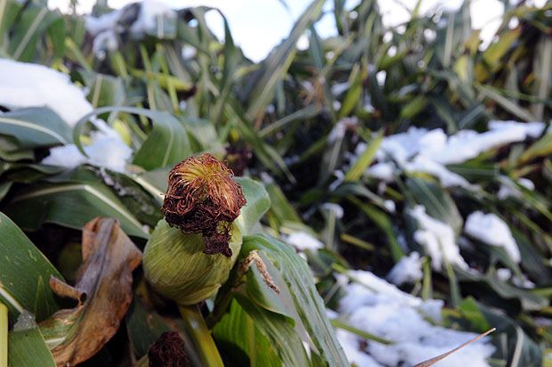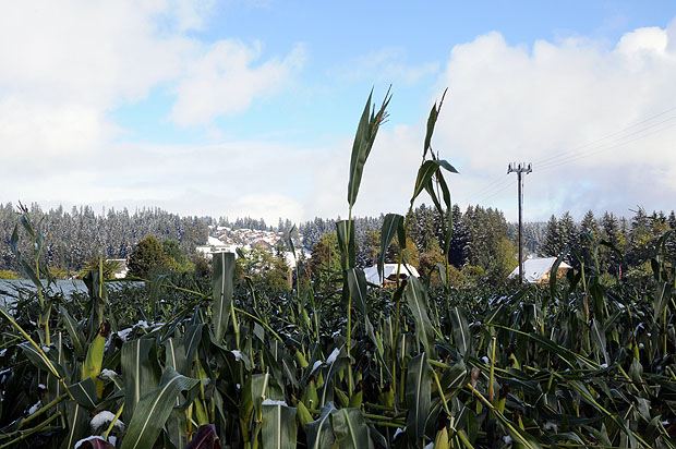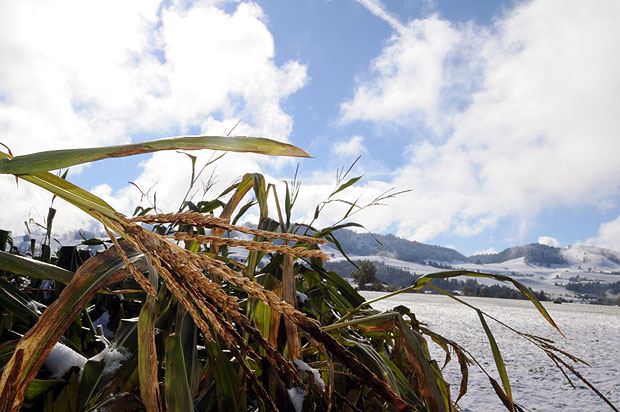 Am Wochenende fiel in mittleren und höheren Lagen Schnee. Darunter regnete es ergiebig. Das erschwert die Maisernte und könnte für Qualitätsprobleme sorgen. Auch volumenmässig dürfte die Ernte schlechter ausfallen.