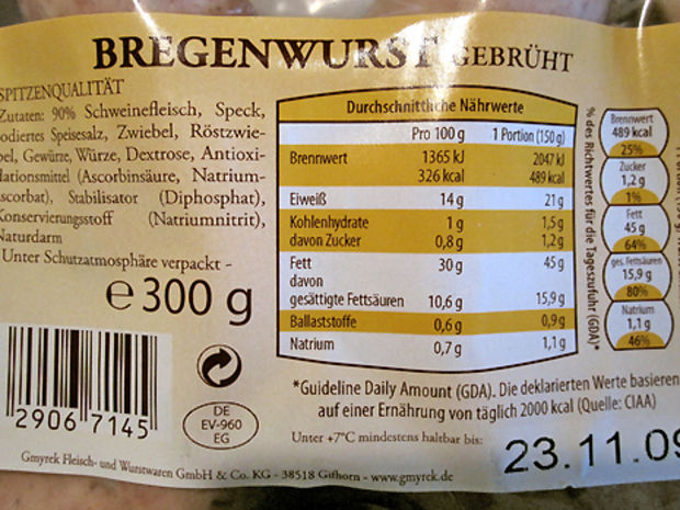 Das EU-Parlament hatte im Sommer die Nährwert-kennzeichnung für obligatorisch erklärt. Angegegeben werden müssen der Energiewert sowie die Mengen an Fett, gesättigten Fettsäuren, Kohlenhydraten, Zucker, Eiweiss und Salz.