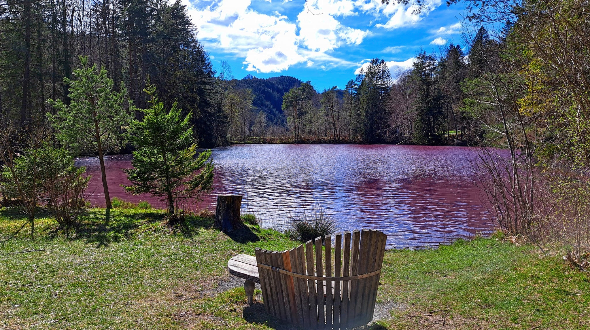 Ein tolles Naturschauspiel gibt es derzeit für wenige Tage im Allgäu zu bestaunen: Der Gipsbruchweiher bei Füssen leuchtet bedingt durch den Photosyntheseprozess von Purpurbakterien in Lilatönen. Die Bakterien sind harmlos und nicht gesundheitsgefährdend pic.twitter.com/boDfl4PMJ2