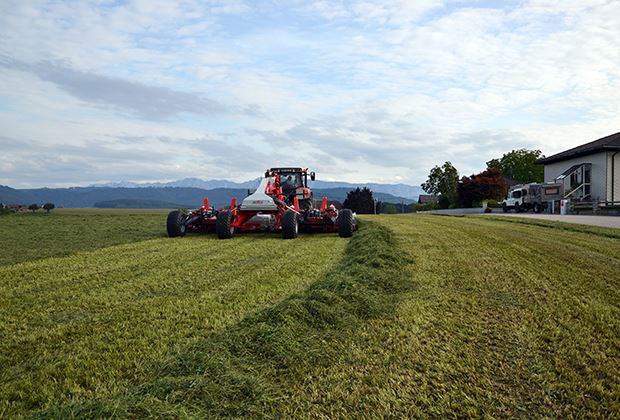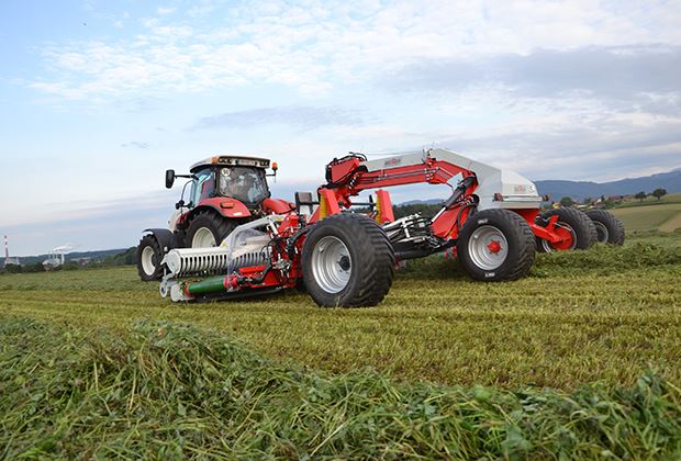 Das Herzstück dieser Maschine ist die elastische und ungesteuerte Pick-up, welche gemeinsam mit dem Förderrotor für einen gleichmässigen Gutstrom sorgt. Rechverluste am Vorgewende werden mit einer grosszügig dimensionierten Schwadrolle vermieden. Diese sichert auch bei nassem Gras und in allen Hanglangen eine saubere Aufnahme.
