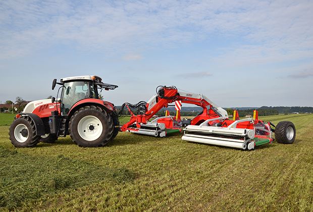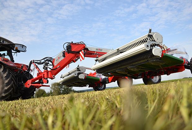 Diese heben die Arbeitseinheit zuverlässig parallel vom Boden und senken sie wieder parallel ab. Dadurch wird die Grasnarbe geschont und das geerntete Futter bleibt dabei sauber.