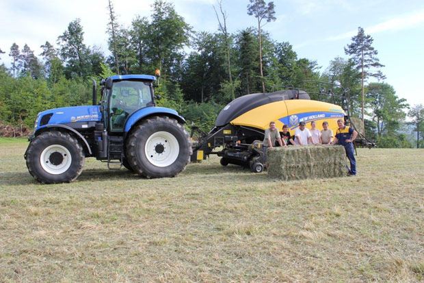 Die Firma Lüscher Landmaschinen & Motorgeräte GmbH fährt zur Zeit von Bertschikon ZH aus mit der neuen BigBaler 890 von New Holland in verschiedene Feldeinsätze. "Wir sind mit der BigBaler und einem T7.250 auf Demo-Tour und auf den Feldern anzutreffen", sagt Adrian Lüscher von der Firma Lüscher.