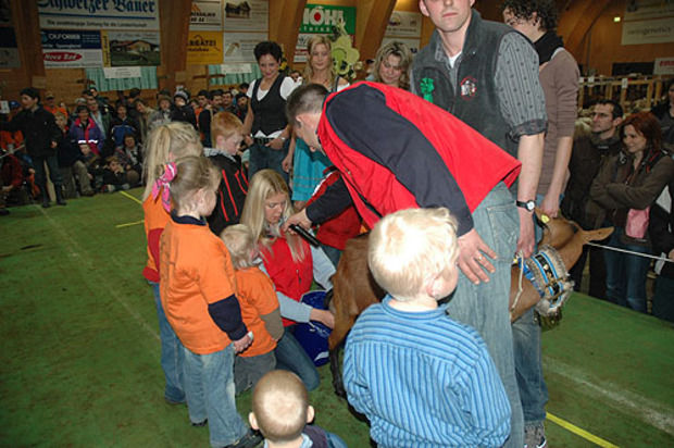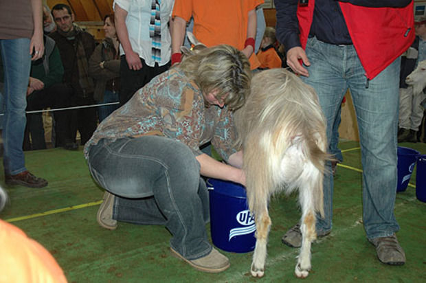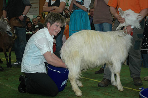 … vom Grössten bis zum Kleinsten. Den Andrea Hug-Fanclub freut’s … Andrea Hug steht nun ein Jahr im Dienst der Ziegenfreunde Andrea Hugs Eltern halten Pfauenziegen, in den Armen hält sie jetzt aber ein Walliser Schwarzhals-Gitzi. Die sechs Finalistinnen: v.l. Karin Tanner, Appenzell, Elisa Crüzer, Vicosoprano GR, die neue Geisskönigin Andrea Hug, Degersheim SG, Sonja Geisser, Wattwil SG, Michaela Bleiker, Ulisbach SG und Aurelia Däscher, Davos GR. Andrea Hug nach ihrem Sieg. Jubel nach der Wahl. Die abtretende Milchprinzessin und Jury-Mitglied Esther Bischof gratuliert der neuen Geiss-Königin. Der Fanclub von Andrea Hug jubelt nach ihrem Sieg. Nicht nur die sechs Kandidatinnen erhalten einen Blumenstrauss, sondern auch ein Jury-Mitglied: Miss Ostschweiz Dominique Christinger (ganz rechts) hatte letzten Samstag Geburtstag. Die letzten Minuten für die erste Geissenkönigin, Monika Frei. Auch Andrea Hug muss sich den Fragen der Jury stellen. Elisa Crüzer ist aus dem Bergell angereist und imponierte vor allem durch ihren Lockruf. Moderator Christian Manser mit Kandidatin Sonja Geisser aus Wattwil. „Gut, gibt’s die Schweizer Bauern.“ Aurelia Däscher könnte sich vorstellen, wie die Prominenten im Edelweiss-Hemd für die Landwirtschaft zu werben. Sechs gut gelaunte Finalistinnen stellen sich der Wahl: (v.l.) Andrea Hug, Aurelia Däscher. Elisa Crüzer, Michaela Bleiker, Sonja Geisser und Karin Tanner. Aurelia Däscher melkt ebenfalls von hinten und gibt sogar Interviews. Auch Andrea Hug kann handmelken. … oder, wie Karin Tanner, von hinten. Melken können alle sechs Finalistinnen: Ob von der Seite (Michaela Bleiker) … Von Kopf bis Fuss eine Schönheit