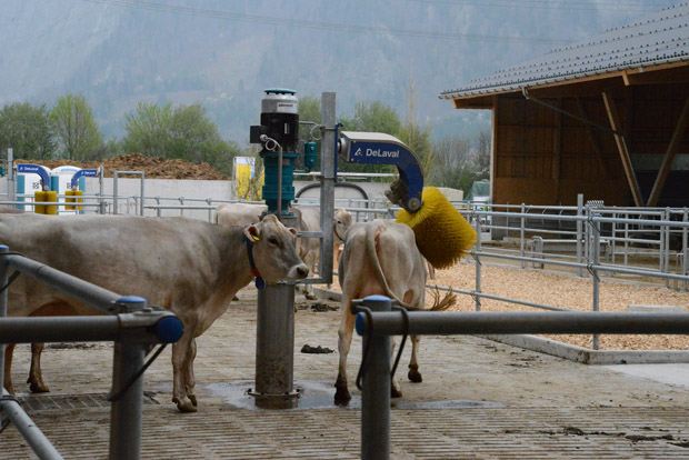 Auch das Personal musste sich an den neuen Stall gewöhnen. Carl Brandenburger lobt das Team für seine Einstellung: «Ich spreche Kaspar Freuler und seinen Leuten ein Riesenlob aus. Sie gingen positiv an den neuen Stall heran und haben es mit Freude angepackt.» Im Team habe es schon auch Wehmut gegeben, fügt Freuler an. «Als die Kühe aus dem alten Stall hinausgingen, hatte unser langjähriger Melker Sepp Jennewein Tränen in den Augen.» Er erinnert daran, dass er etwa 40 Jahre lang im alten Stall gearbeitet habe: «Er kam mit 18 Jahren zu uns und ist jetzt 58. Trotzdem hat er sich sehr positiv zum neuen Stall eingestellt.»