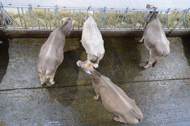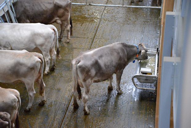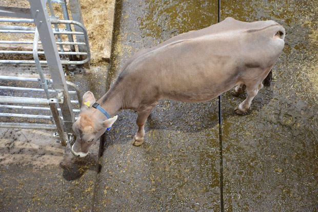 Der zweite Punkt sei, dass sich die Kühe in der Gruppe neu zurechtfinden müssten. Es gebe auch vermehrt Rangkämpfe: «Es hat ein, zwei Kühe, die unten durch müssen.» Zum Glück sei der Stall so grosszügig gebaut, dass es keine Sackgassen gebe. «Und drittens haben wir von der Einzelkomponentenfütterung zur Mischration gewechselt, bei der 24 Stunden das gleiche Futter vorliegt», so Freuler. Er sehe aber auch Ansatzpunkte, wie man die Fütterung noch verbessern könne: «Die Kühe fressen gegenüber zuvor noch etwas zu wenig. Die Ration war zunächst vermutlich etwas zu trocken. Jetzt schütten wir Wasser dazu.»