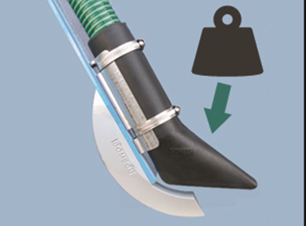Der 10.5 Meter Schleppschuh Verteiler hat wie die grösseren Speedy Modelle an jeder Seite eine klappbare Spitze von 1,50 Meter. Diese Spitzen sind gesichert mit einem 3-Dimensionalen Anfahrschutz. Diese 3-D Anfahrschütze sichern die Schleppschuhe gegen Kollision aus jeder Richtung. Als Rohr dient ein 5-Zoll-Anschluss.