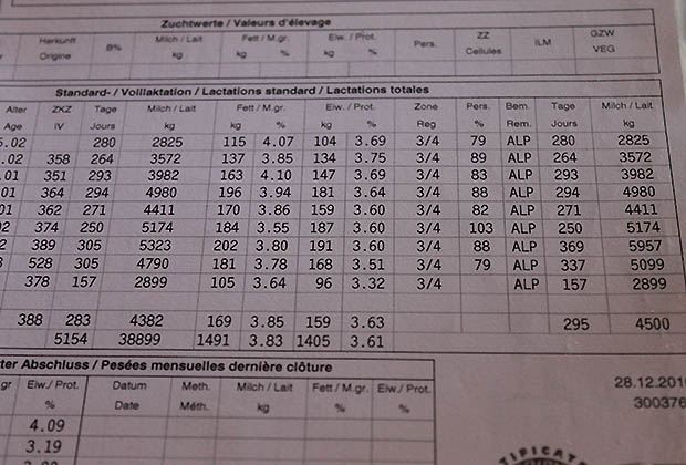 Von Rindern dürfe man am Anfang nicht zu viel verlangen, Evolèner seien erst mit fünf Jahren voll entwickelt. So hat die zweitlaktierende Kuh Lena einen Abschluss von 2746kg mit 4,4% Fett und 3,78% Protein.