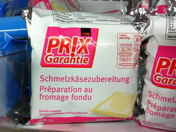 Der Prix-Garantie-Schmelzkäse enthalte seit Ende Ende Juni nicht mehr 61 Prozent Schweizer Käse, sondern nur noch 25 Prozent Käse unbekannter Herkunft. Stattdessen enthält er laut K-Tipp viel Molkenkonzentrat, Milchprotein, Maisstärke und Molkenpulver. Der Salzgehalt ist vervierfacht. Hergestellt wird er nicht mehr in der Schweiz, sondern in Italien. Aber der Preis ist unverändert.