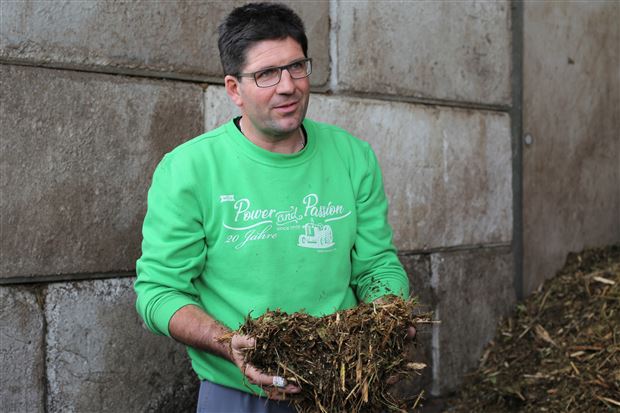 Und er wird gratis abgeliefert und ausgebracht, jedenfalls im Umkreis des Biomasse-Hofs. Trotzdem nehmen nicht viele Landwirte das Angebot wahr. "Beim Mineraldünger sieht der Landwirt im nächsten Jahr seinen bläulichen Weizen und freut sich über die Wirkung. Der Kompost ist zwar auch Dünger für den Boden, setzt seine Nährstoffe aber viel langsamer frei", sagt Peter Bossert, Bruder von Rainer und Betriebsleiter eines Milchbetriebs, der jährlich rund 700'000 kg Milch produziert. Es brauche 5-10 Jahre bis der Landwirt einen Erfolg sehe, wenn er jährlich eine Kompost-Gabe mache.