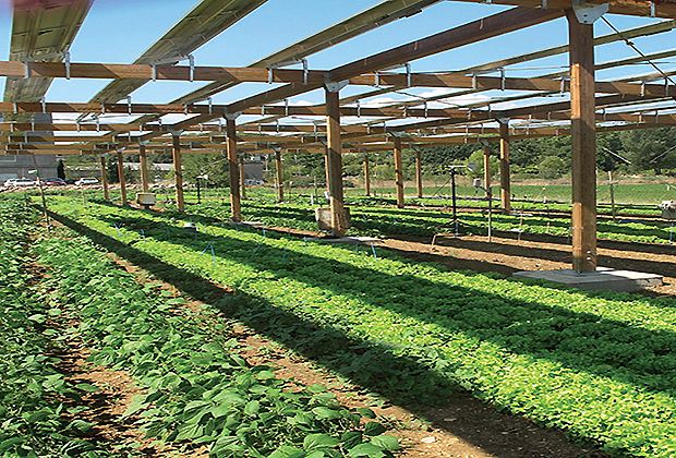 Die Testanlage sieht eine Ausrichtung der PV-Module in einer bestimmten Süd-West-Exposition vor. Dabei wird zwar die Energieeffizienz der Anlage um 5 Prozent verringert. Durch die Montage der Stahlträger geht 6 Prozent des Kulturlandes verloren. Die ISE-Forscher vermuten aufgrund von Simulationsergebnissen, dass der Ertrag aus schattentoleranten Ackerkulturen wie Kartoffeln, Spinat, Salat und Leguminosen usw. die minimal nötige Verringerung der Anbaufläche mindestens kompensiert.