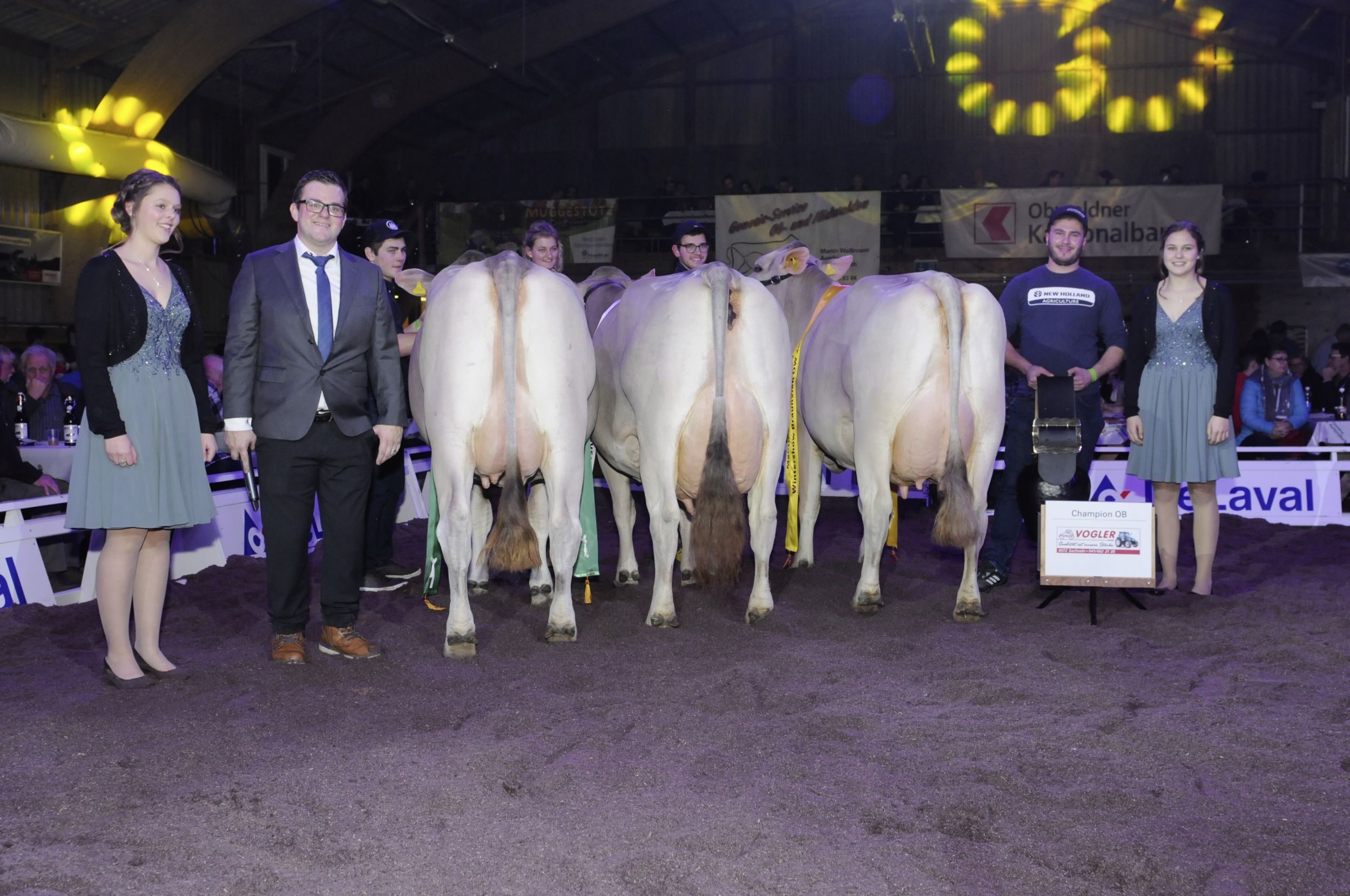 Zwischen den 12 Abteilungen mit BS-Kühen wurden auch zwei herausragende Abteilungen Original-Braunviehkühe gerichtet. Als Siegerin ging Drittmelkkuh Tiger Timea von Thomas Schrackmann, Sarnen, hervor. Die sehr ausgeglichene und mit viel Kapazität ausgestattete Kuh verkörpert in idealster Weise den Zweinutzungstyp. Timea hat zudem ein phänomenales Euter und gewann deshalb auch den Schöneutertitel der OB-Kühe deutlich. Reserve Champion OB wurde Rubio Rehli von Paul Burch-Gwerder, Stalden (Sarnen) vor Elvis Ewyn ebenfalls aus dem Stall von Thomas Schrackmann.