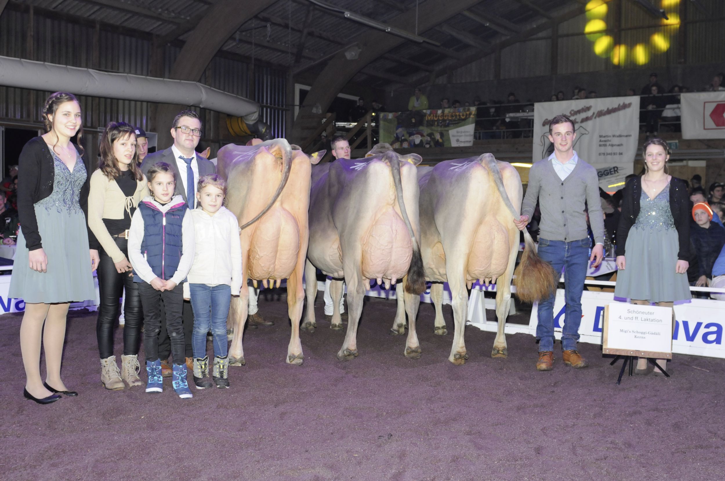 Podest Schöneuter 4. und ff. Laktationen: 1. Wendelins Devin Paloma (Mitte), Martin Wallimann, Alpnach Dorf; 2. Gislerwaid Nescardo Lumnezia (links), Franz Durrer, Kerns; 3. Blooming Birke, Markus Waser – von Ah, Kerns. Marcel Wipfli