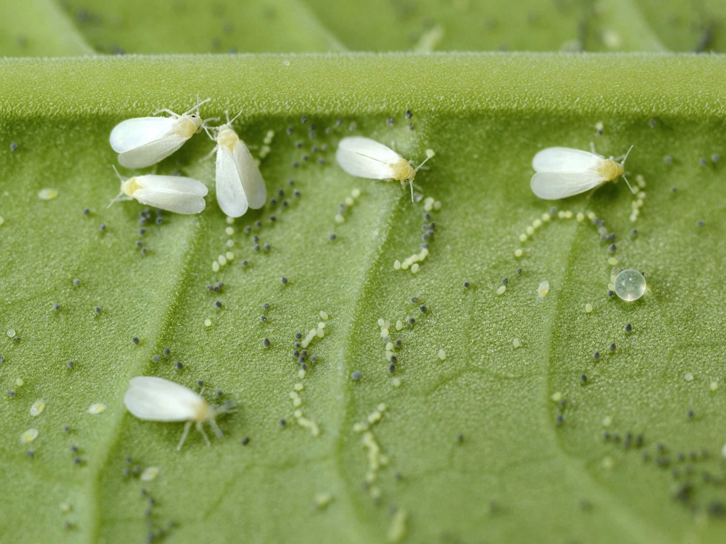 Die beiden Schädlinge befallen Kohlgewächse und führen zu Qualitätseinbussen und Ertragsausfällen. So saugen die Larven der Weissen Fliege an den Pflanzen und scheiden unverdauten Zuckersaft aus. Dieser sogenannte Honigtau überzieht die Rosenkohlröschen und auf dem klebrigen Belag siedeln sich Schwärzepilze an, welche die Pflanze schwarz färben und das Erntegut verunreinigen.