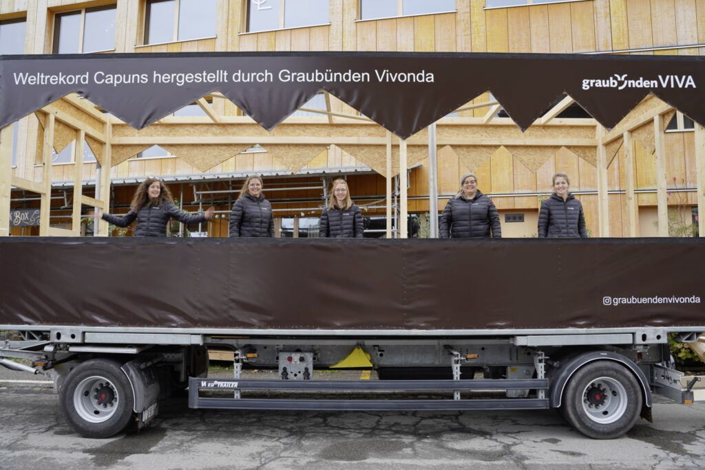 Der Kanton Graubünden hat an der Publikumsmesse Olma in St. Gallen am Samstag einen 17 Meter langen Capuns präsentiert. Das mit Mangoldblätter eingewickelte Teigpäckchen stellte damit nach Angaben des Kantons einen Weltrekord dar.