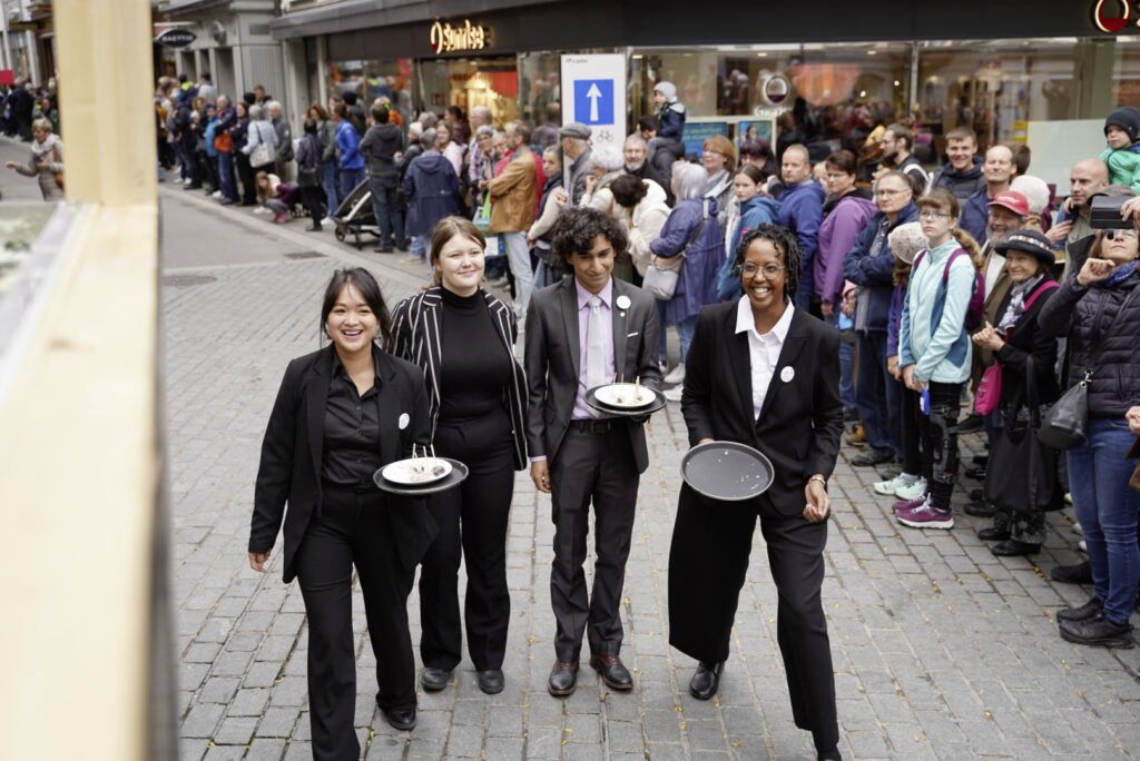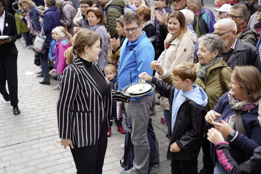 Die rund 45 Kilo schwere Teigwurst wurde schliesslich zerteilt und in rund tausend Stücken an Besucherinnen und Besucher des Festumzugs verteilt. Der Weltrekord-Capuns war aus Bündner Zutaten hergestellt worden: Weizenmehl aus Tiefencastel, Blattmangold aus Malans, Fleisch aus Ramosch.