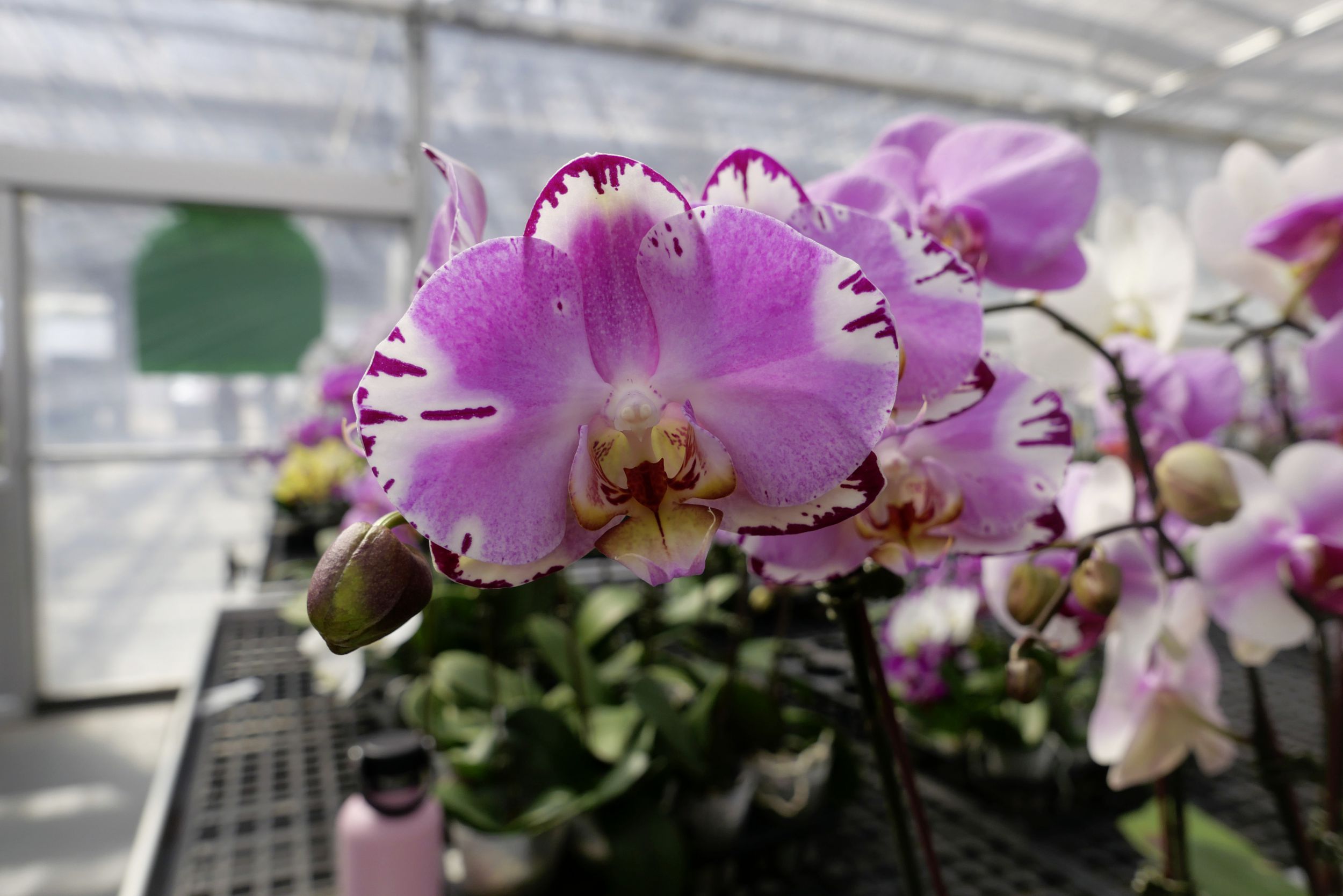 Zwei verschiedene Orchideen-Gattungen sind im Gewächshaus von Floricultura zu finden. Die meisten sind Schmetterlings-Orchideen (der Gattung Phalaenopsis), Floricultura hat aber auch sogenannte Tiger-Orchideen (der Gattung Oncidium) im Angebot. Es handelt sich dabei um Triebe, die kleinere, aber viele Blüten tragen.