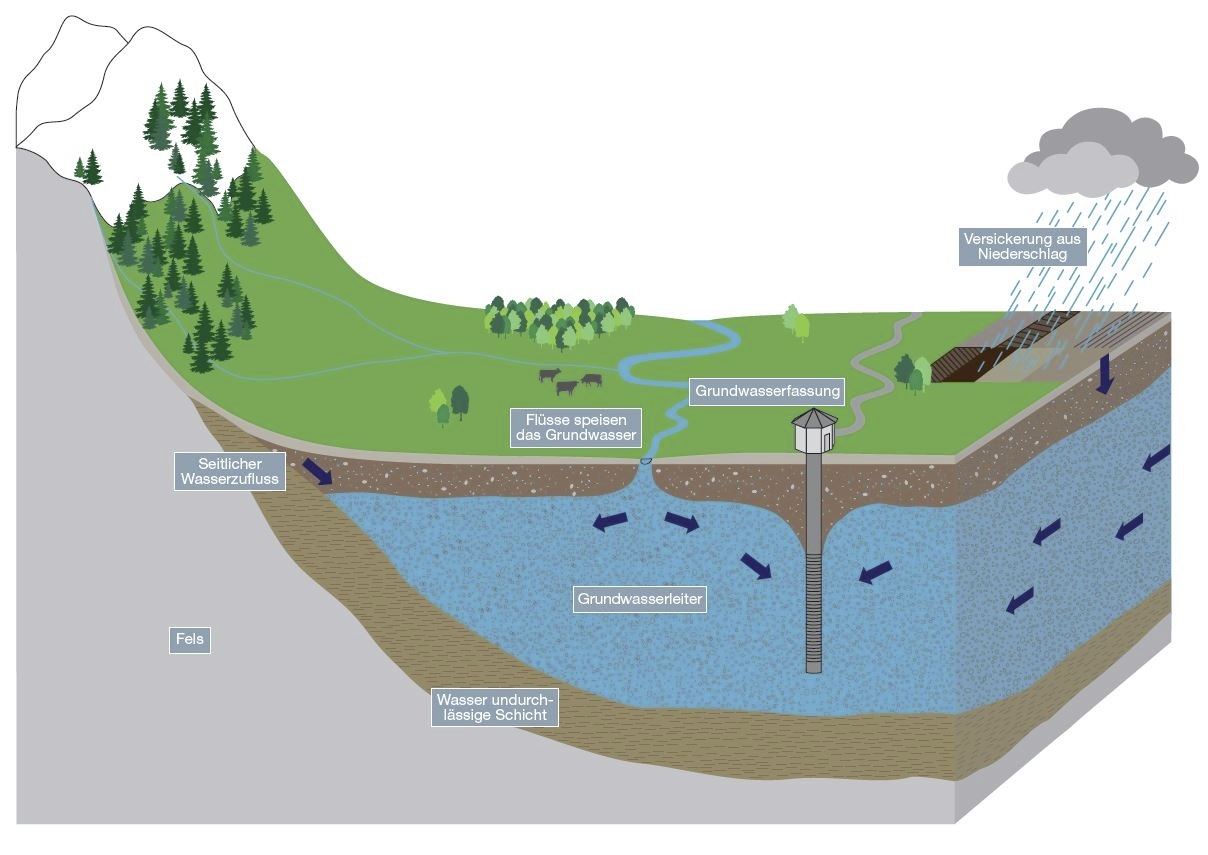 Rund 80 Prozent des Schweizer Trinkwassers wird dem Grundwasser entnommen. Die Motion Zanetti Roberto verlangt von den Kantonen, die Zuströmbereiche für alle Grundwasserfassungen von regionaler Bedeutung sowie Grundwasserfassungen, bei denen eine Verschmutzungsgefahr besteht, bis 2035 auszuscheiden.