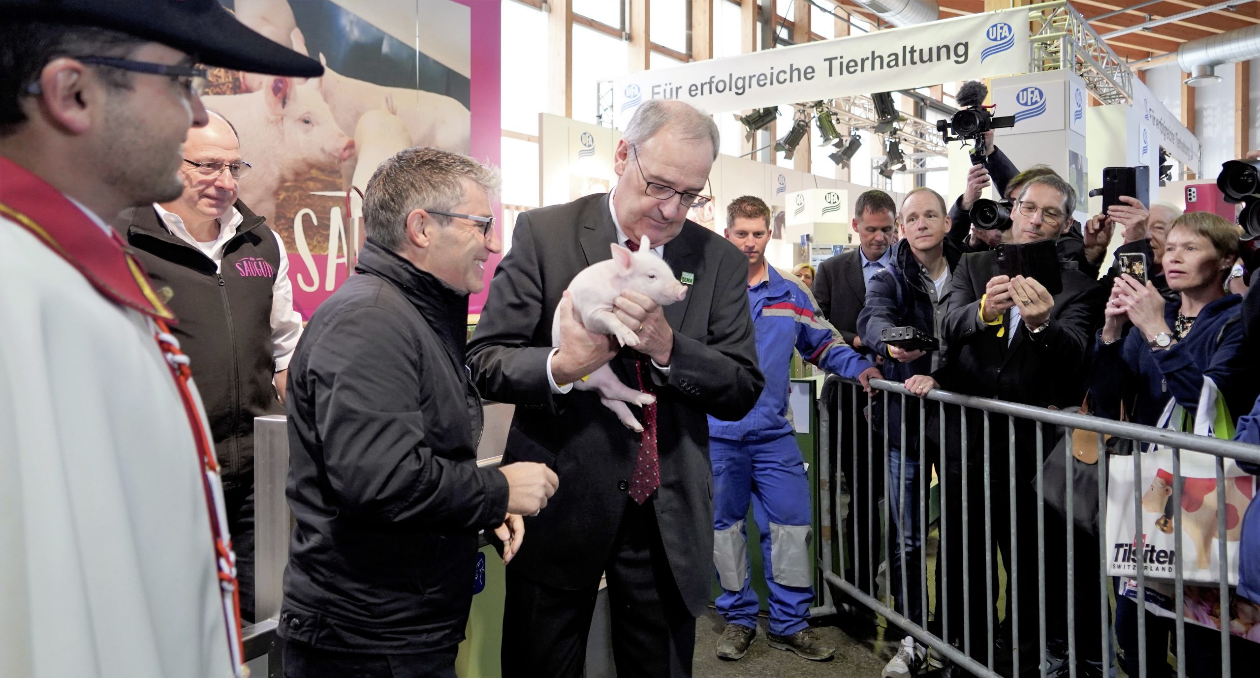 Auch Olma-Direktorin Christine Bolt betonte die Wichtigkeit der persönlichen Begegnung an der Olma. «Für eine nachhaltige Kundenbeziehung müssen Menschen sich treffen». Die Messe sei gegründet worden, «um miteinander ins Geschäft zu kommen und Handel zu treiben». Nach der Eröffnung in der Tonhalle liess sich der Bundespräsident durch die Messehallen führen. Nicht fehlen durfte dabei der Fototermin mit dem Olma-Säuli.