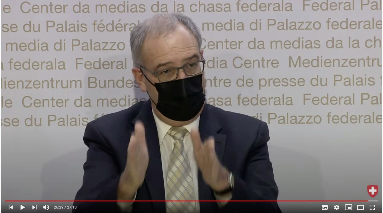 Zur Medikamentenversorgung sagte Parmelin, dass die Schweiz bislang keine Industriepolitik betrieben habe und es jetzt falsch wäre, in die Arzneimittelproduktion einzusteigen und einen Medikamentenhersteller zu kaufen. Stattdessen müssten gute Voraussetzungen geschaffen werden, damit die Pharma erfolgreich wirtschaften könne. Die Schweiz müsse etwa bei der inländischen Forschung, Entwicklung und Produktion von Impfstoffen ihre Position als Produktionsstandort stärken.