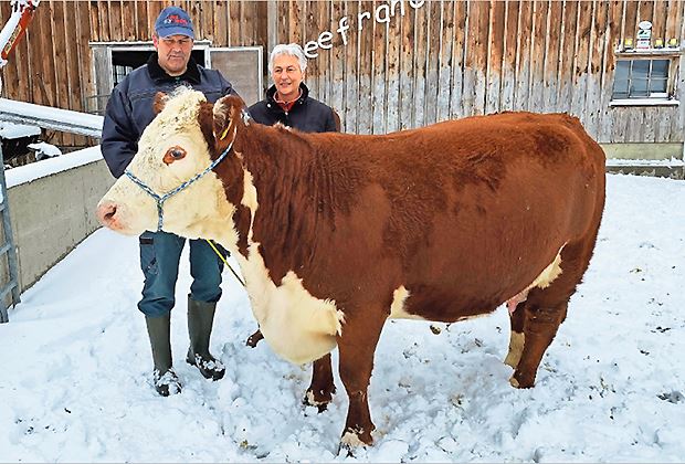 Heidi und Walter Fässer haben an der Swissopen schon viel gewonnen: Dreimal hatten sie den Hereford-Champion an den beef.ch auf dem Pfannenstiel, 2007 gewannen sie den Hereford-Titel mit Germania, 2010 den Titel der Miss beef.ch mit Jamana und 2013 den Hereford-Titel mit Kumali.