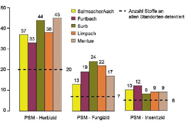 Vereinzelt wurden Konzentrationen über 1 Mikrogramm pro Liter festgestellt. Das sei hoch, schreiben die Forscher. Die kurzfristigen Spitzenkonzentrationen dürften teils vielfach höher liegen, für einzelne Substanzen wohl über der Grenze, über welcher sie akut toxisch wirken. Der „Pestizid-Cocktail“ führe zur Beeinträchtigung der Organismen im Wasser, befürchten die Forscher.
