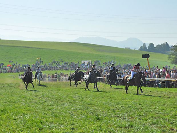 Jedes Rennen ein Highlight, das ist typisch Schwarzenburger Bauernpferderennen. Ziehen in einem Feld Pferde Römerwagen mit Gladiatoren, stehen fürs nächste Rennen bereits Biker und Reiter am Start. Für Abwechslung und Spannung ist gesorgt, was dem Bauernpferderennen jedes Jahr eine grosse Zuschauerschar beschert.