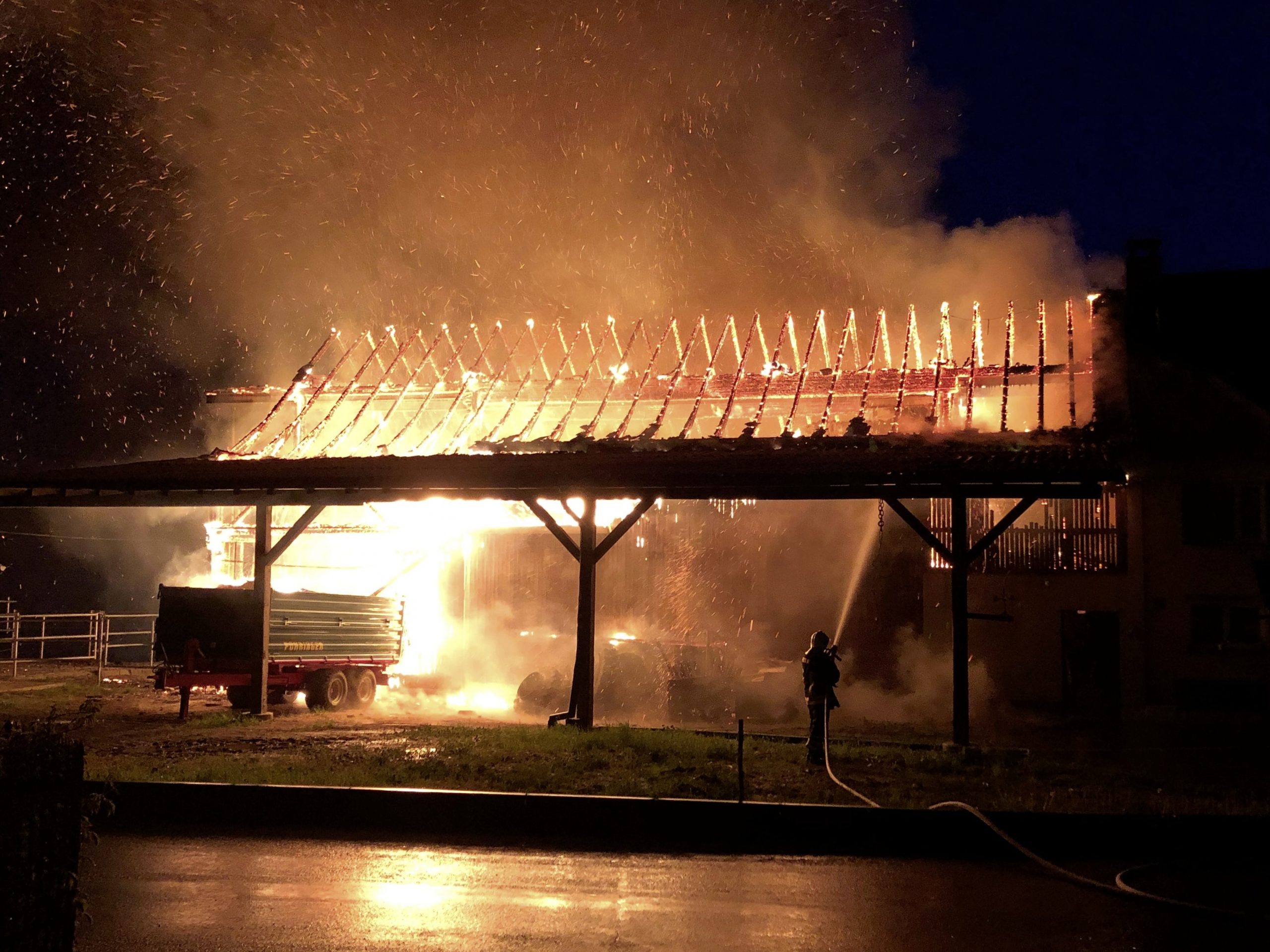 Der Vollbrand wurde der Notrufzentrale kurz nach 4.30 Uhr gemeldet. Die Einsatzkräften konnten das Feuer stehenden Stall rasch unter Kontrolle bringen und löschen.